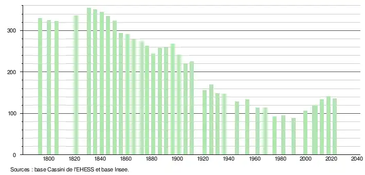 - ↑ Fiches Insee - Populations de référence de la commune pour les années 2006, 2007, 2008, 2009, 2010, 2011, 2012, 2013, 2014, 2015, 2016, 2017, 2018, 2019, 2020, 2021 et 2022.