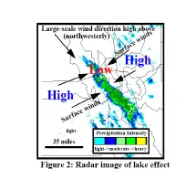 Les tempêtes de neige dues à des bourrasques côtières autour lac du Grand Lac Salé sont considérées comme l’un des problèmes de prévisions hivernales plus difficiles au Service météorologique national de Salt Lake City. Le lac fait 4 500 km2 et est entouré par un relief complexe, dont les montagnes Wasatch à l'est.