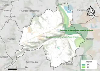 Un espace protégé est présent sur la commune : le « cours de la Garonne, de l'Aveyron, du Viaur et du Tarn », objet d'un arrêté de protection de biotope, d'une superficie de 1 262,3 ha[17].
