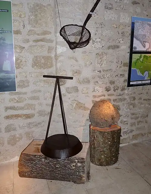 - ↑ Le fumier de vache est séché sur une aire, délavé avec de l'eau et piétiné. « La pâte obtenue est ensuite découpée en galettes rondes, de l'épaisseur d'une main, grâce à une sorte de poêle en bois renversée. Les bouses sont alors séchées puis empilées en tas coniques, les bousats, abrités de la pluie sous une couche de paille ou de roseaux. Une équipe de six à huit hommes peut fabriquer de deux à trois mille bouses en deux jours de travail. Celles-ci sont très appréciées, notamment par les plus pauvres, pour leur force calorifique supérieure à celle du bois, et ce malgré l'odeur pénétrante qui imprègne toute la maison. De plus, la cendre des bouses est reconnue comme un engrais efficace par les Maraîchins et par leurs voisins du Bocage et de la Plaine, qui en achètent en quantité ». Cf Yannis Suire, Le Marais poitevin. Une écohistoire du XVIe à l'aube du XXe siècle, Centre vendéen de recherches historiques, , p. 250.