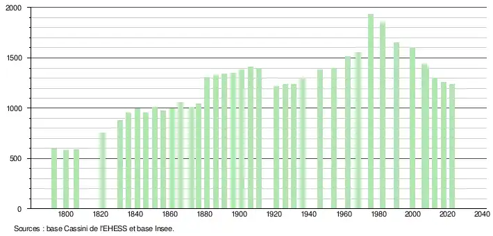 - ↑ Fiches Insee - Populations de référence de la commune pour les années 2006, 2007, 2008, 2009, 2010, 2011, 2012, 2013, 2014, 2015, 2016, 2017, 2018, 2019, 2020, 2021 et 2022.