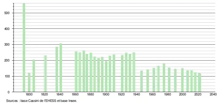 - ↑ Fiches Insee - Populations de référence de la commune pour les années 2006, 2007, 2008, 2009, 2010, 2011, 2012, 2013, 2014, 2015, 2016, 2017, 2018, 2019, 2020, 2021 et 2022.