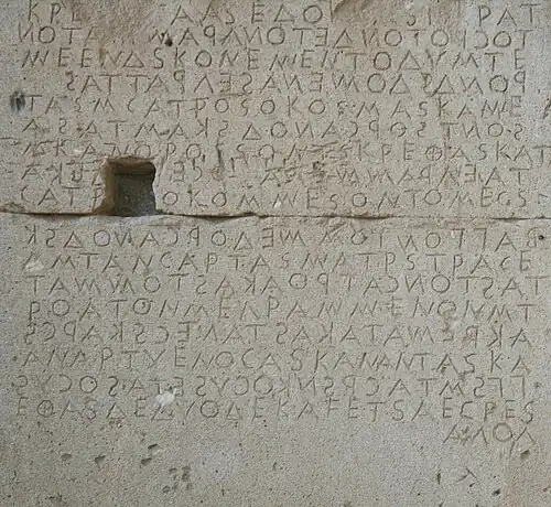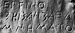 - ↑ (en) Threatte, The Grammar of Attic Inscriptions, Berlin/New York, W. de Gruyter, , 737 p. (ISBN 3-11-007344-7).