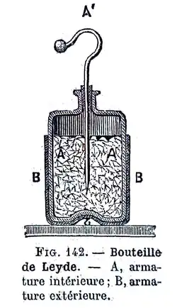 - ↑ J-C Courtot, Manuel de Physique, Ch. Courtot, (lire en ligne), p. 28 : bouteille de Leyde.