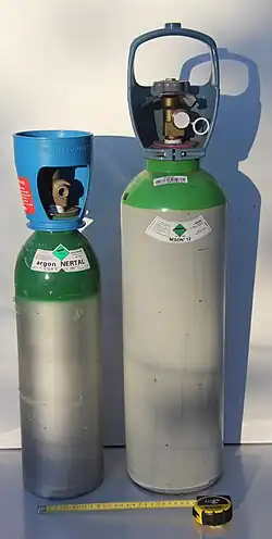 On appelle généralement bouteille de gaz ou bonbonne de gaz ou bouteille sous pression, un récipient ou réservoir sous pression, métallique ou pour l'alléger, en matériau composite, de forme cylindrique, plus ou moins allongé, conçu pour contenir un gaz à une pression nettement différente de la pression ambiante.