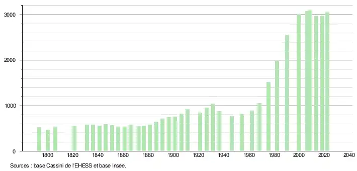 - ↑ Fiches Insee - Populations de référence de la commune pour les années 2006, 2007, 2008, 2009, 2010, 2011, 2012, 2013, 2014, 2015, 2016, 2017, 2018, 2019, 2020, 2021 et 2022.