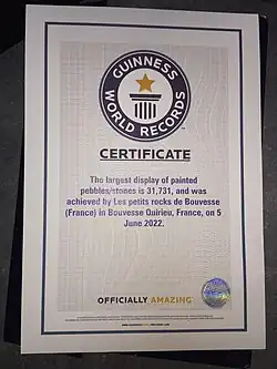 - ↑ (en-GB) « Largest display of painted pebbles/stones », sur Guinness World Records (consulté le ).