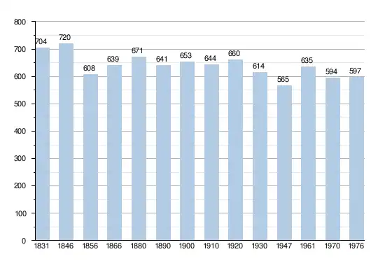 - Sources : INS, Rem. : 1831 jusqu'en 1970 = recensements, 1976 = nombre d'habitants au 31 décembre.