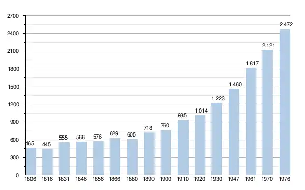 - Sources : INS, Rem. : 1831 jusqu'en 1970 = recensements, 1976 = nombre d'habitants au 31 décembre[2].