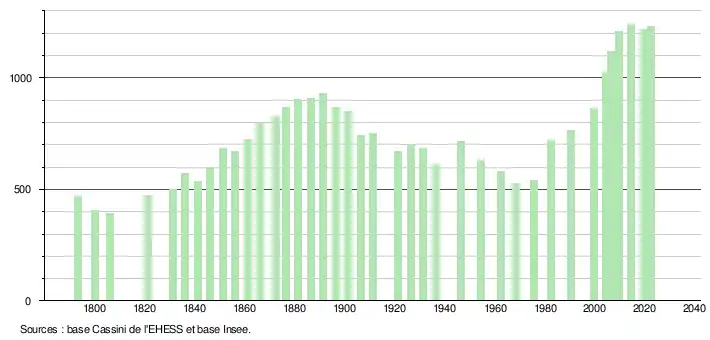 - ↑ Fiches Insee - Populations de référence de la commune pour les années 2006, 2007, 2008, 2009, 2010, 2011, 2012, 2013, 2014, 2015, 2016, 2017, 2018, 2019, 2020, 2021 et 2022.