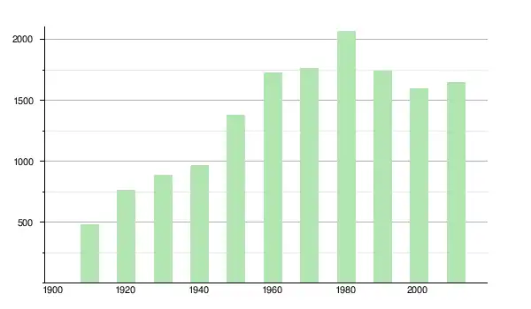 | 1960 | 1 730 | ▲ +25,18 % | |