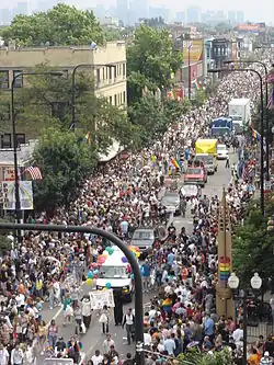 La Chicago Pride Parade (en) et les Market Days attirent plus de 1 000 000 visiteurs[8] chaque été. Le défilé suit un trajet allant de l'intersection de la rue Montrose et de Broadway, vers le sud sur Broadway puis sur la rue Halsted jusqu'à l'avenue Belmont, dévie vers l'est sur l'avenue Belmont pour rejoindre Broadway encore, puis se dirige vers le sud jusqu'à la promenade Diversey (en) puis tourne vers l'est sur le chemin Sheridan (en).