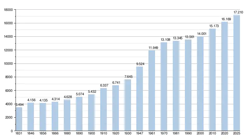 - Source : DGS - Remarque: 1831 jusqu'à 1981=recensement; depuis 1990=nombre d'habitants chaque 1er janvier[3]