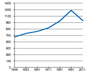 - 1 2 (sq) « Évolution de la population 1948-2011 », sur pop-stat.mashke.org (consulté le ).
