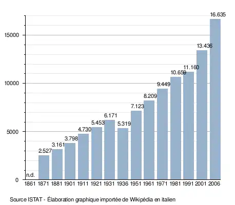 - ↑ (it) Popolazione residente e bilancio demografico sur le site de l'ISTAT.