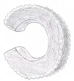 La forme à double lame est plus rare que celle à lame unique sur le disque[8]. Dans la forme double, la bande de métal qui entoure le poignet est repliée de chaque côté, ce qui donne deux lames parallèles, toutes deux hautes d'environ 2,5 centimètres[9]. Cette forme est connue chez les Nubas (Soudan), les Murles (Soudan) et les Hausas (Nigeria). Les Hausas appellent les anneaux de frappe au bras baura, les Nuba zuar[10]