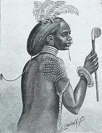 - ↑ Georg August Schweinfurth, Artes Africanae, illustrations and descriptions of productions of the industrial arts of Central African tribes, Brockhaus, 1875, Tableau IX, figures 13