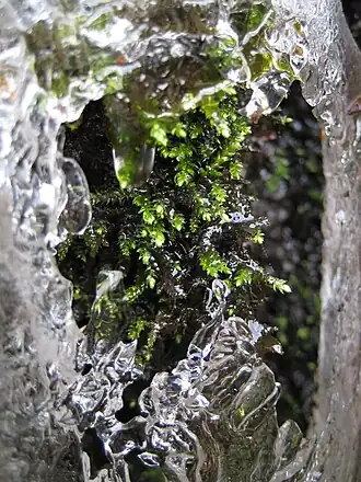 Dans certains contextes (sources[5] pétrifiantes, suintement sur roche, cascades d'eau riches en calcium et gaz carbonique dissous, bord de rivières) cette hygrophyte a la particularité d'être impliquée dans des phénomènes de pétrification assez rapide (formation de roches de type tufs et travertins via un processus dit de biolithogenèse[6],[7]). On la trouve aussi dans les milieux ombragés et humides, sur le sol et les racines d'arbres en milieu forestier et dans les prairies humides.