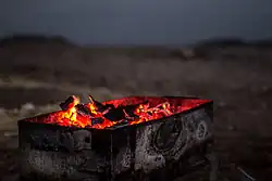 Les braises émettent alors de la lumière suivant leur température (des braises orange sont plus chaudes que des braises de couleur rouge sombre).