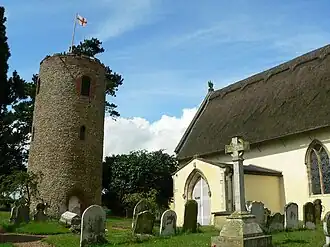 Église Saint-André, Bramfield, avec sa tour ronde détachée à gauche