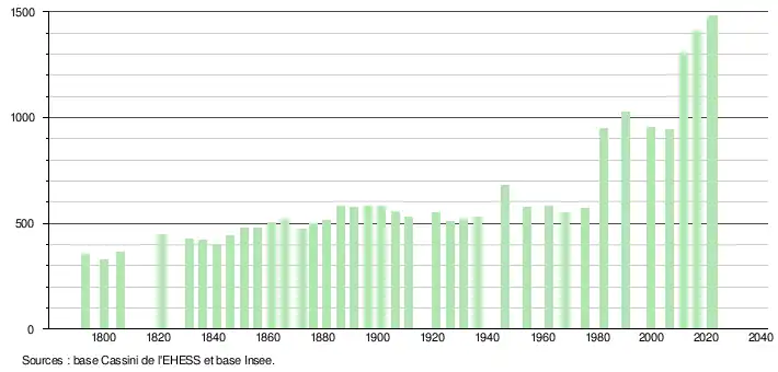 - ↑ Fiches Insee - Populations de référence de la commune pour les années 2006, 2007, 2008, 2009, 2010, 2011, 2012, 2013, 2014, 2015, 2016, 2017, 2018, 2019, 2020, 2021 et 2022.