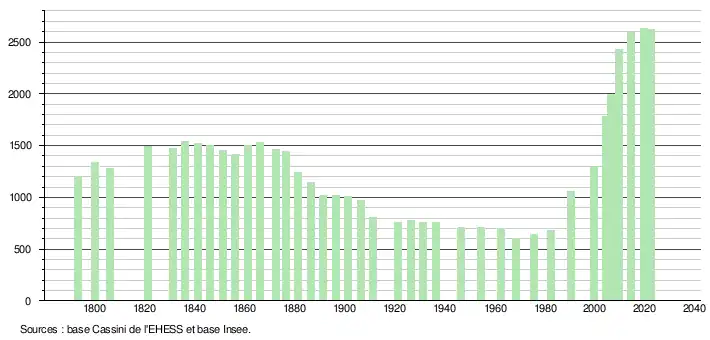 - ↑ Fiches Insee - Populations de référence de la commune pour les années 2006, 2007, 2008, 2009, 2010, 2011, 2012, 2013, 2014, 2015, 2016, 2017, 2018, 2019, 2020, 2021 et 2022.