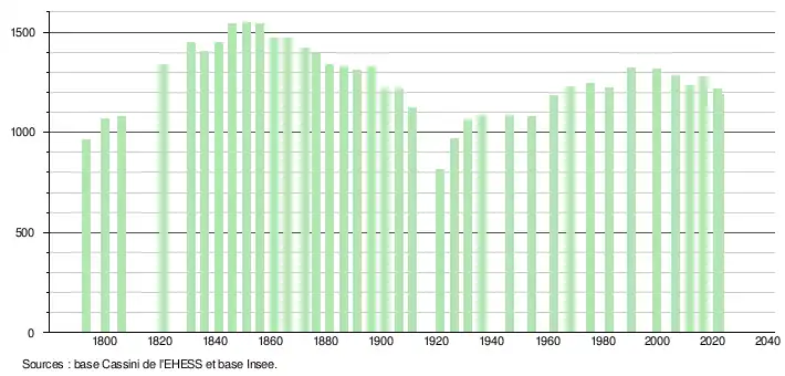 - ↑ Fiches Insee - Populations de référence de la commune pour les années 2006, 2007, 2008, 2009, 2010, 2011, 2012, 2013, 2014, 2015, 2016, 2017, 2018, 2019, 2020, 2021 et 2022.