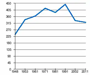 - 1 2 (sr + en) « Livre 20 : Vue d'ensemble comparative de la population en 1948, 1953, 1961, 1971, 1981, 1991, 2002 et 2011, données par localités) » [PDF], pages du recensement de 2011 en Serbie - Institut de statistique de la république de Serbie, (consulté le )