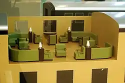Les voitures voyageurs sont presque toutes à deux niveaux, ce que permet une hauteur disponible de 4,5 m entre plancher inférieur et plafond supérieur. La largeur est fixée à 6 m et la longueur généralement adoptée est de 42 m. Les aménagements permettent d'offrir, en troisième classe, 460 places assises par voiture. Les voitures de classe supérieure ont une capacité moindre, mais disposent de davantage d'éléments de confort : toilettes plus nombreuses, salons. Sont également prévues des voitures-restaurants (130 places), des voitures-lits pourvues de douches et de salons pour les petits déjeuners, et même des voitures-bains et des voitures-cinéma (196 fauteuils)[8].