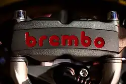 Brembo S.p.A. est une société italienne basée à Stezzano, près de Bergame, spécialisée dans les systèmes de freinage. La marque est réputée, notamment grâce à son implication en compétition de très haut niveau, comme en Formule 1, en MotoGP ou Superbike[4]. Elle est membre de l'association européenne des équipementiers automobiles, le CLEPA.