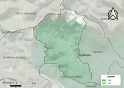 L'occupation des sols de la commune, telle qu'elle ressort de la base de données européenne d’occupation biophysique des sols Corine Land Cover (CLC), est marquée par l'importance des forêts et milieux semi-naturels (91,2 % en 2018), une proportion identique à celle de 1990 (91,2 %). La répartition détaillée en 2018 est la suivante : milieux à végétation arbustive et/ou herbacée (47,2 %), forêts (39,7 %), zones agricoles hétérogènes (6,1 %), espaces ouverts, sans ou avec peu de végétation (4,3 %), prairies (2,3 %), cultures permanentes (0,3 %)[16]. L'évolution de l’occupation des sols de la commune et de ses infrastructures peut être observée sur les différentes représentations cartographiques du territoire : la carte de Cassini (XVIIIe siècle), la carte d'état-major (1820-1866) et les cartes ou photos aériennes de l'IGN pour la période actuelle (1950 à aujourd'hui)[Carte 1].