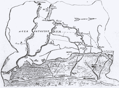 - la branche du fleuve qui passait par Lova di Campagna Lupia (désigné aussi comme "Mino Medauco"),