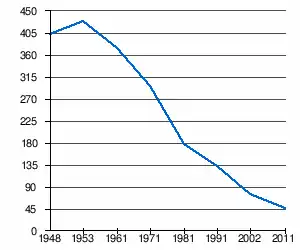 | 401 | 429 | 376 | 296 | 177 | 131 | 77[2] | 47[1] |