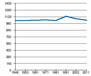 En 2011, l'âge moyen de la population était de 45,1 ans, 44,8 ans pour les hommes et 45,4 ans pour les femmes[9].