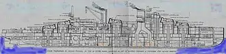 | Blindage | 400 mm en tourelles 180 à 260 mm en ceinture 60 mm en pont 314 mm en kiosque |