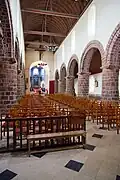 - L'église Saint-Sulpice, de style roman, des XIIe et XVIe siècles, inscrite au titre des monuments historiques en 1932[13]. Plusieurs étapes de construction se sont succédé jusqu'à l'édifice actuel. Cette église originellement en bois est mentionnée avant 1015 où elle subit une reconstruction en pierre et mortier. Ravagée par un incendie en 1138, elle est de nouveau reconstruite en pierre (grison). Elle est cédée par Guillaume de Crépon au milieu du XIe siècle et rattachée à l'abbaye de Lyre.