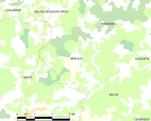 En 2016, année précédant la création de la commune nouvelle de Sanilhac, Breuilh était limitrophe de quatre autres communes.