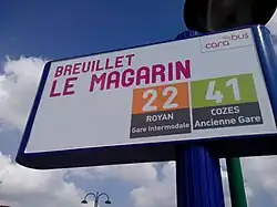 Cinq stations Cara’Bus sont implantées dans la commune : Le Magarin, Breuillet-Garage, Breuillet-Place du Marché, La Simandière et Taupignac. Deux lignes de bus desservent la commune. La ligne 22 permet de rejoindre à la fois les communes de la grande banlieue ouest de Royan (Chaillevette, Étaules, Arvert et La Tremblade/Ronce-les-Bains), le pôle commercial Val-Lumière de Vaux-sur-Mer et la ville de Royan, épicentre de la vie économique locale. La ligne 41 est une ligne à la demande permettant des liaisons avec La Tremblade et ses communes satellites (Étaules, Arvert), l’aire de covoiturage de Fontbedeau, à Saint-Sulpice-de-Royan et les communes de l’Est royannais (Le Chay, Grézac et Cozes).