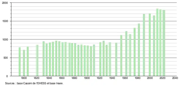 - ↑ Fiches Insee - Populations de référence de la commune pour les années 2006, 2007, 2008, 2009, 2010, 2011, 2012, 2013, 2014, 2015, 2016, 2017, 2018, 2019, 2020, 2021 et 2022.
