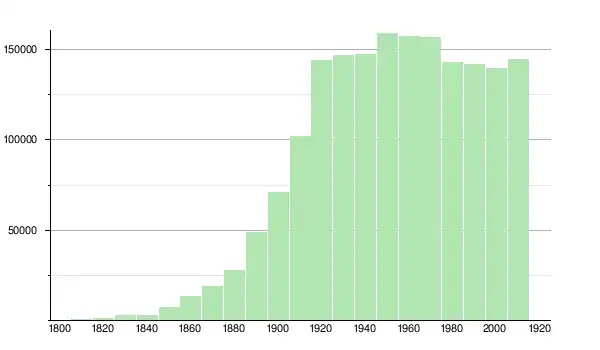 | 1880 | 27 643 | ▲ +45,73 % | |
