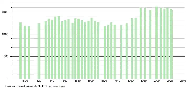 - ↑ Population municipale de référence en vigueur au 1er janvier 2025, millésimée 2022, définie dans les limites territoriales en vigueur au 1er janvier 2024, date de référence statistique : 1er janvier 2022.