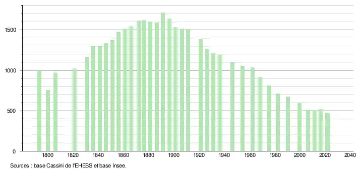 - ↑ Fiches Insee - Populations de référence de la commune pour les années 2006, 2007, 2008, 2009, 2010, 2011, 2012, 2013, 2014, 2015, 2016, 2017, 2018, 2019, 2020, 2021 et 2022.