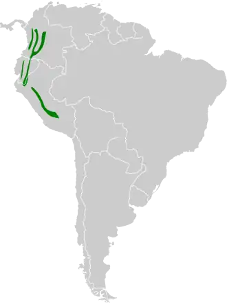 Son aire de répartition comprend la Colombie, l'Équateur et le Pérou.