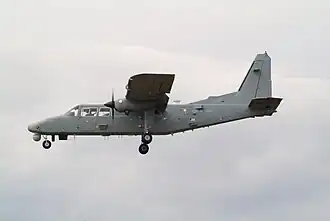 Un Britten-Norman Defender AL.2 de l'Army Air Corps, atterrissant à la base de Waddington, au Royaume-Uni. | |