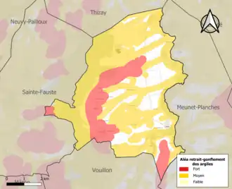 Le retrait-gonflement des sols argileux est susceptible d'engendrer des dommages importants aux bâtiments en cas d’alternance de périodes de sécheresse et de pluie. 82,6 % de la superficie communale est en aléa moyen ou fort (84,7 % au niveau départemental et 48,5 % au niveau national). Sur les 140 bâtiments dénombrés sur la commune en 2019, 119 sont en aléa moyen ou fort, soit 85 %, à comparer aux 86 % au niveau départemental et 54 % au niveau national. Une cartographie de l'exposition du territoire national au retrait gonflement des sols argileux est disponible sur le site du BRGM[23],[24].