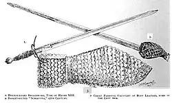 La broadsword est une large épée écossaise du XVIe siècle principalement caractérisée par un panier, sorte de coque capitonnée de velours, recouvrant la main sur la poignée.