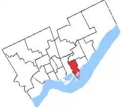 En 1933, la circonscription de Broadview était délimitée par le lac Ontario, la Leslie Avenue, Easter Avenue, Rushbrook Avenue, Queen Street, Jones Avenue, Danforth Avenue, Langord Avenue, la rivière Don et la Toronto Bay.