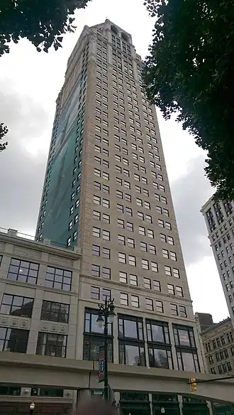 - ↑ « David Broderick Tower, Detroit », sur skyscraperpage.com (consulté le ).