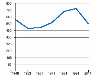 - 1 2 (sq) « Évolution de la population 1948-2011 », sur pop-stat.mashke.org (consulté le ).
