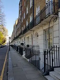 - No 27 : maison de soins infirmiers au début du 20e siècle, appartenant à Lucy Catherine Jervis. Lucile Agnes Dickson, l'épouse de l'un des inventeurs du cinéma William Kennedy Dickson, y est décédée en 1908 et Dickson y a ensuite loué des chambres pendant plusieurs années[8].